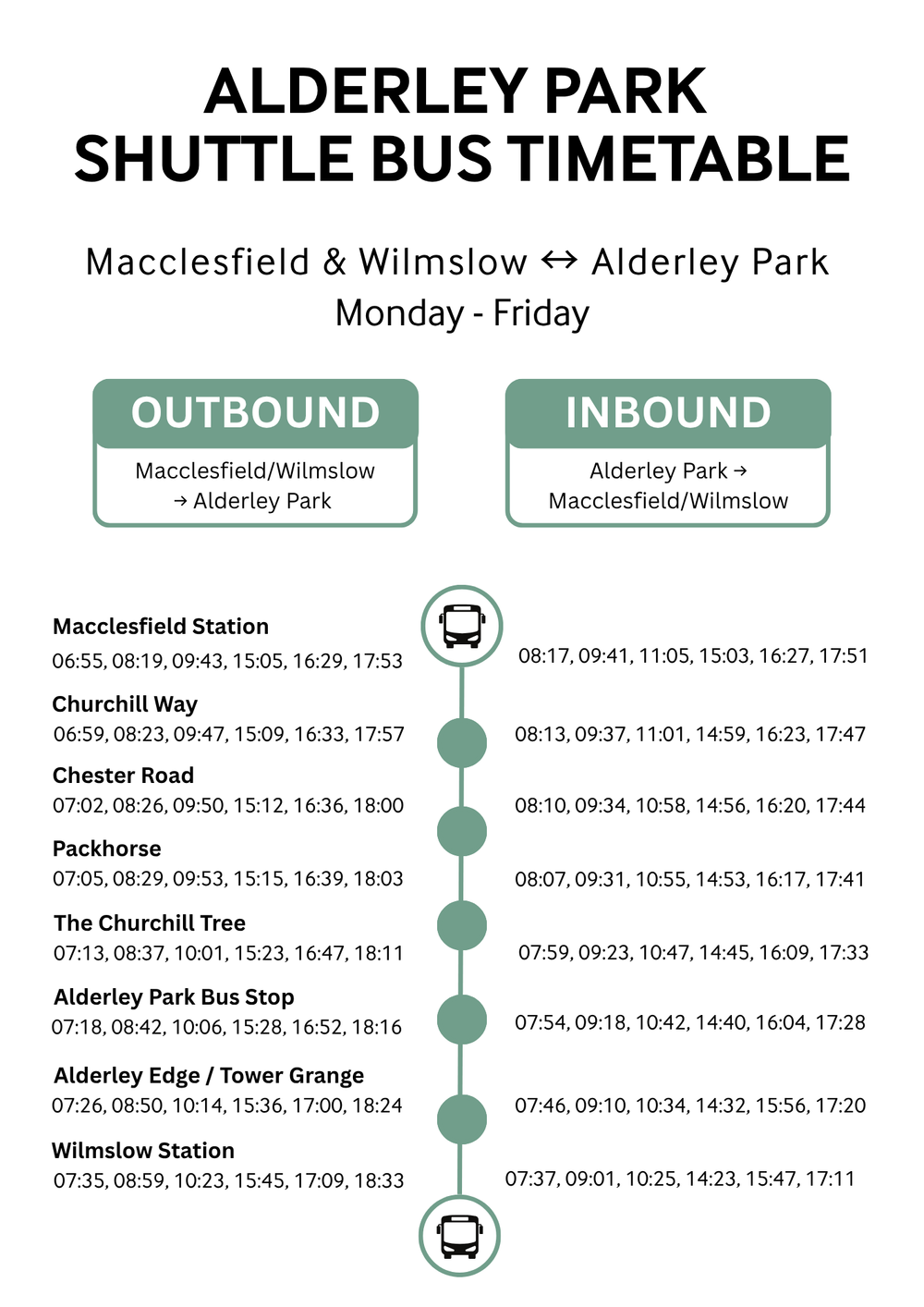 Yes- we have made a couple of changes that are reflected in the updated timetable on this page. The Shuttle will continue to operate from Monday to Friday - please see times below.