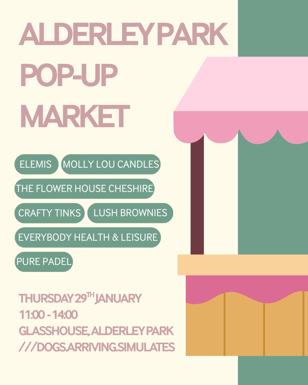 Join us for our Alderley Park pop up markets – where we will be bringing 4-5 local small businesses in with stalls to support health, wellbeing and some feel good purchases to lift our January moods!